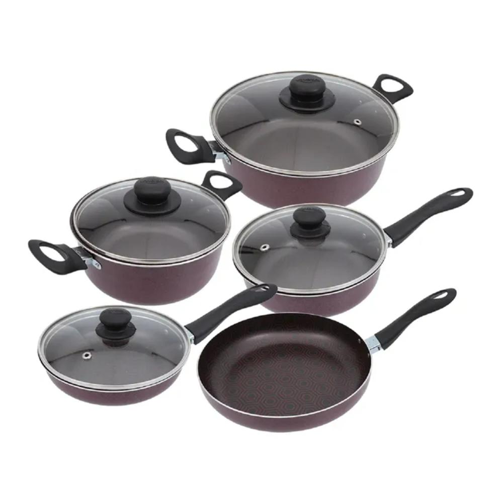 Batería De Cocina 10 Piezas Universal Antiadherente Con Tapa De Vidrio Ultra Color
