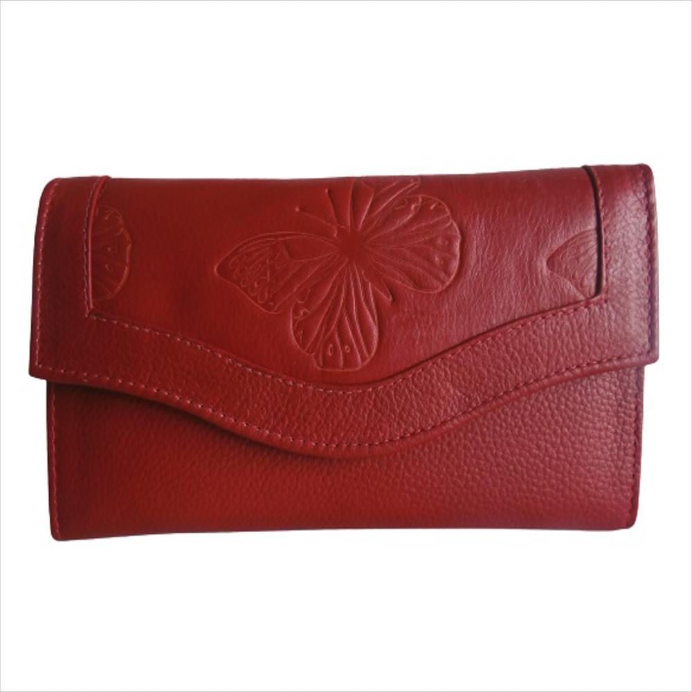 Billetera Grande En Cuero Calzado Guerreros Cb 101 Rojo Mariposas