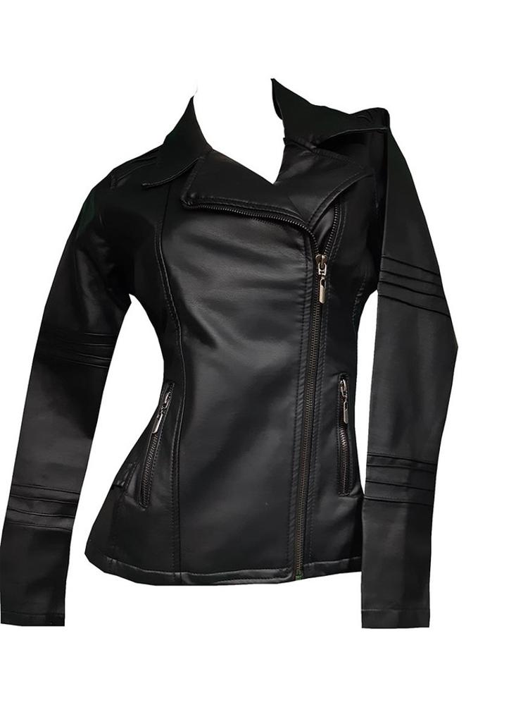 Chaqueta Chamarra En Cuero Tex Dama Negra