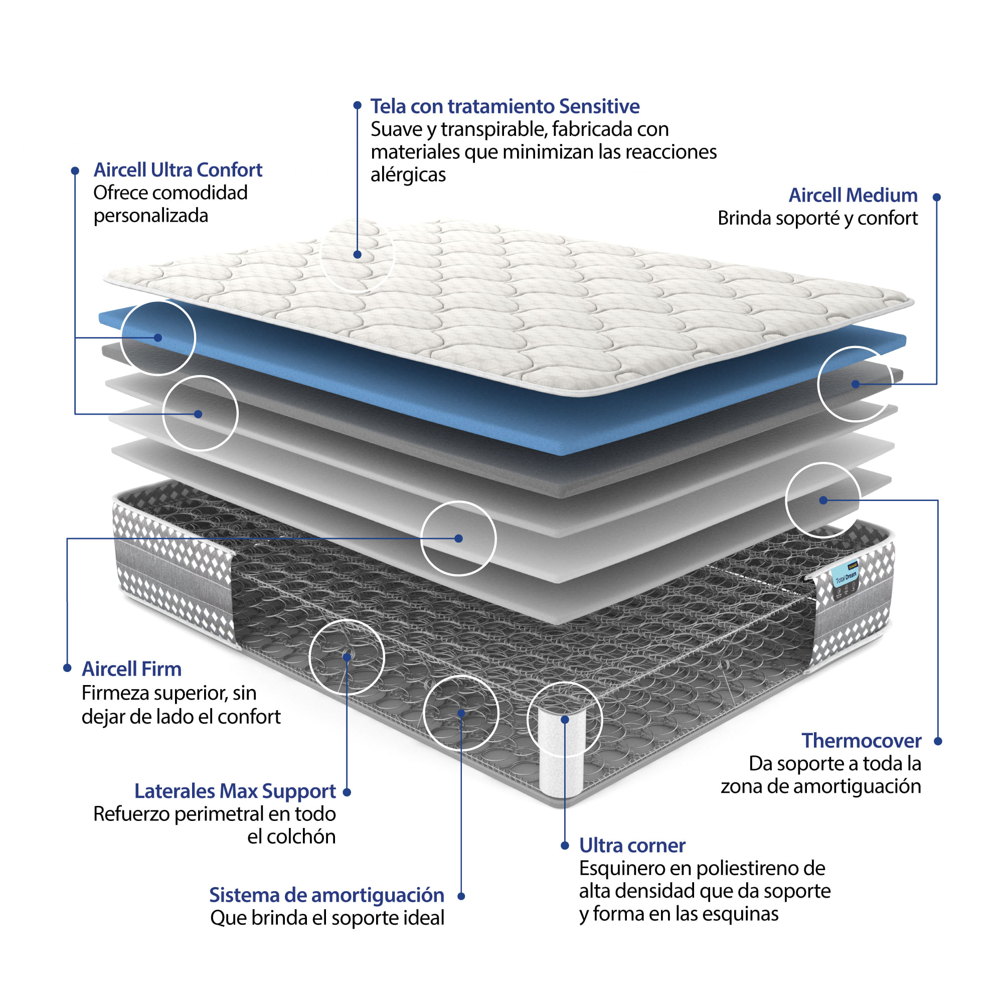 Colchón Sencillo 100 X 190 Eldorado Total Dream Confortable