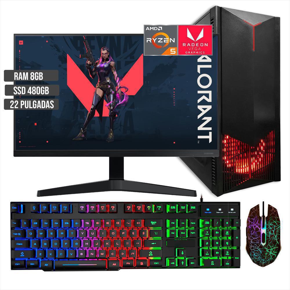 Computador Pc Torre Gamer Legion Amd Ryzen 5 3400G Ssd 480Gb Ram 8Gb Led 22 Full Hd