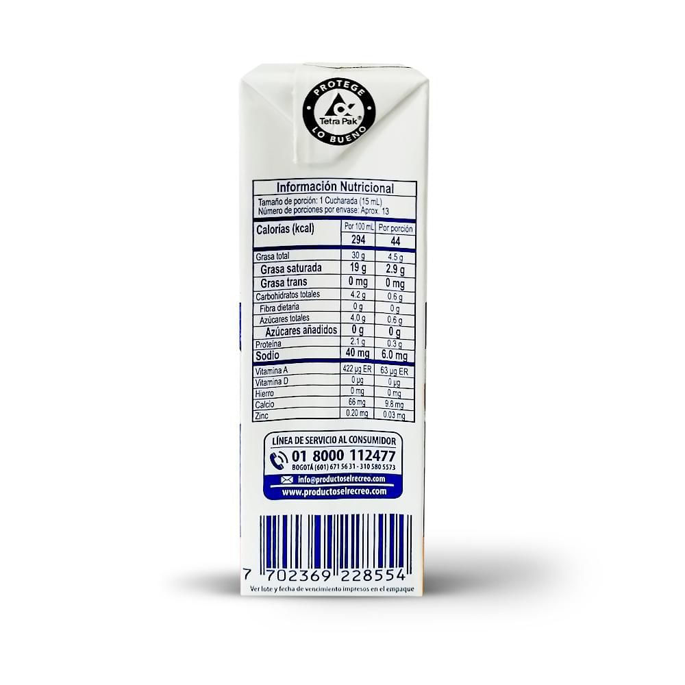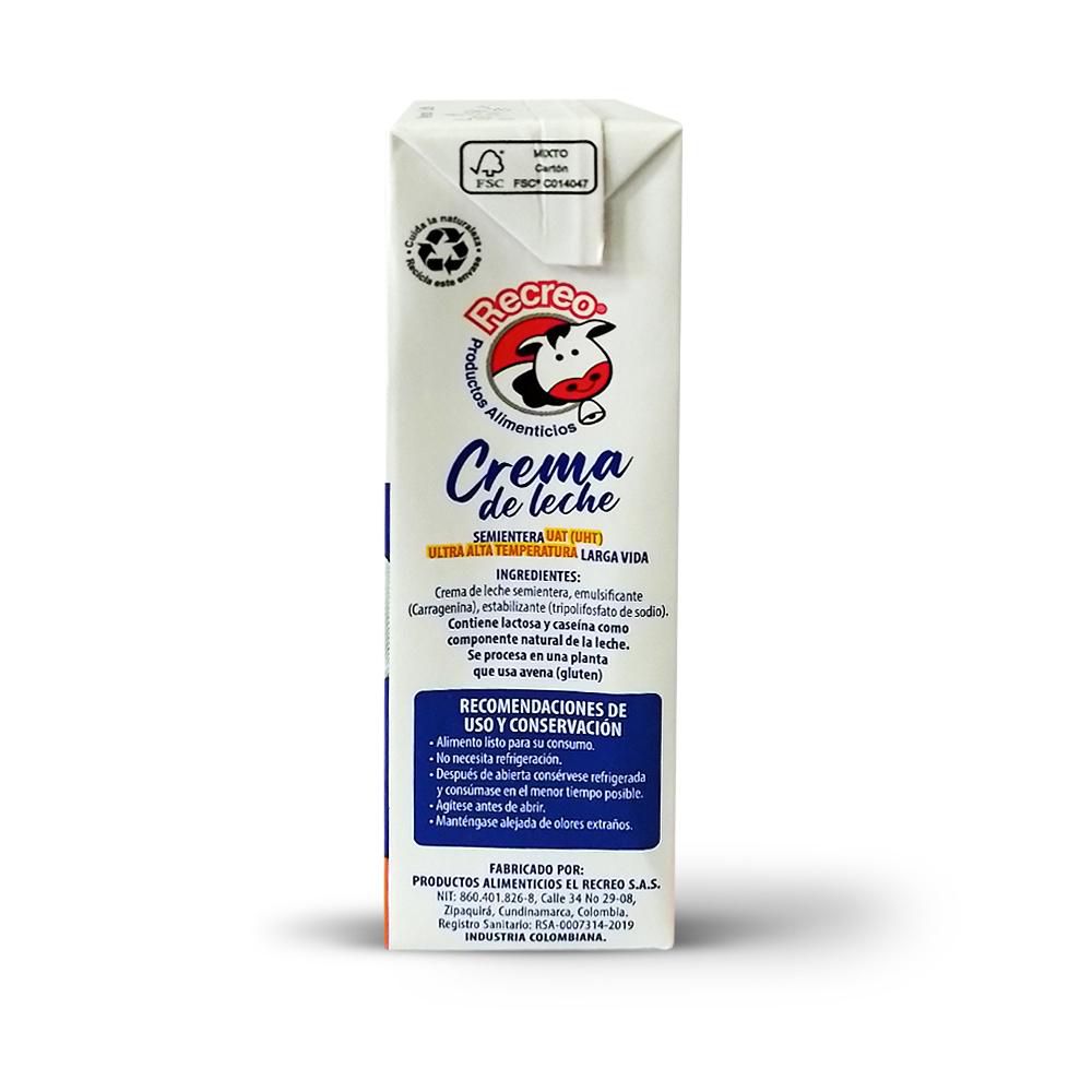 Crema RECREO Leche Semientera larga vida (200 ml)