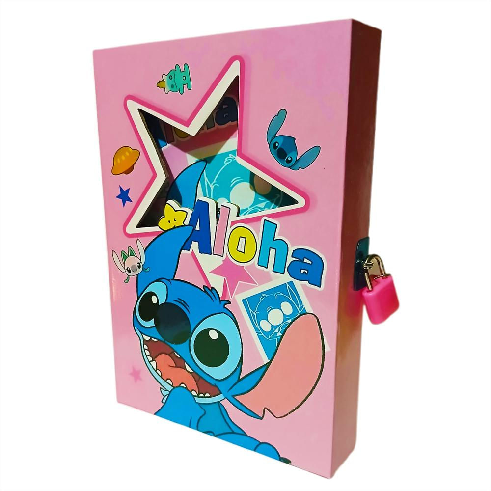 Diario Diseños De Stich Rosado Candado + Llave Juguetería