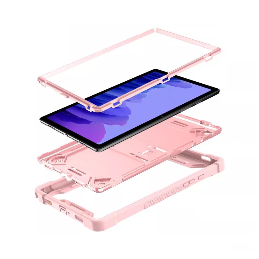 Estuche Antigolpe 3 Capas + Base Color Rosado Para Samsung Tab A8 X200 / X205 10.5