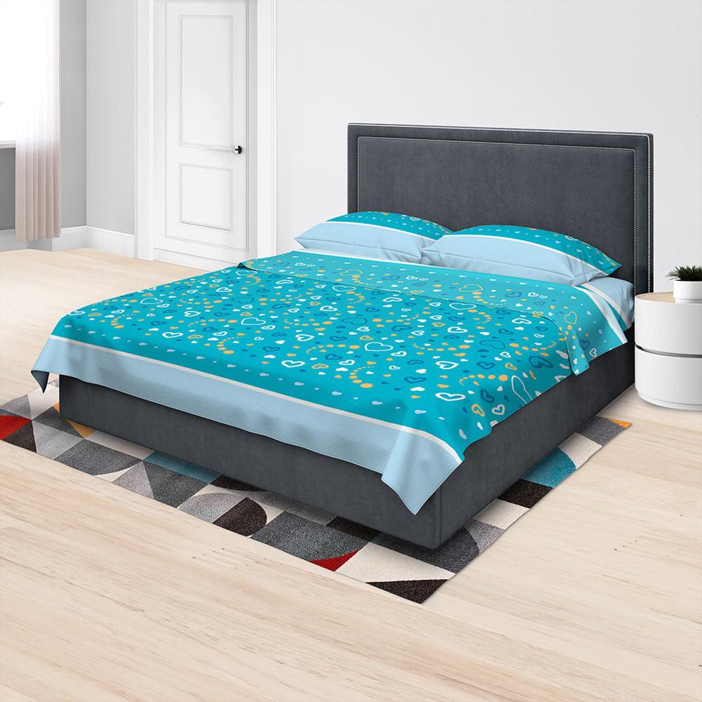 Juego De Sabanas Algodón 180 Hilos Sencilla 100 Cm Azul Con Corazones