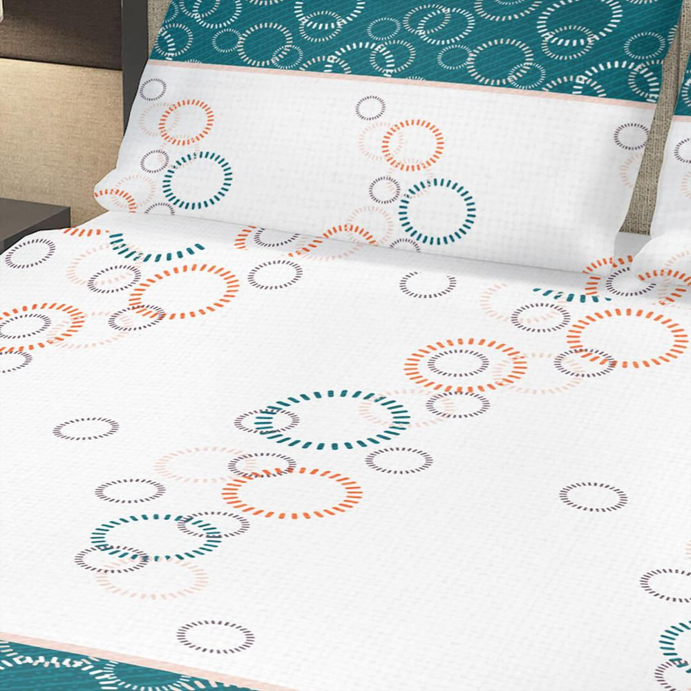 Juego De Sabanas Microfibra King 200 Cm Blanco Con Círculos