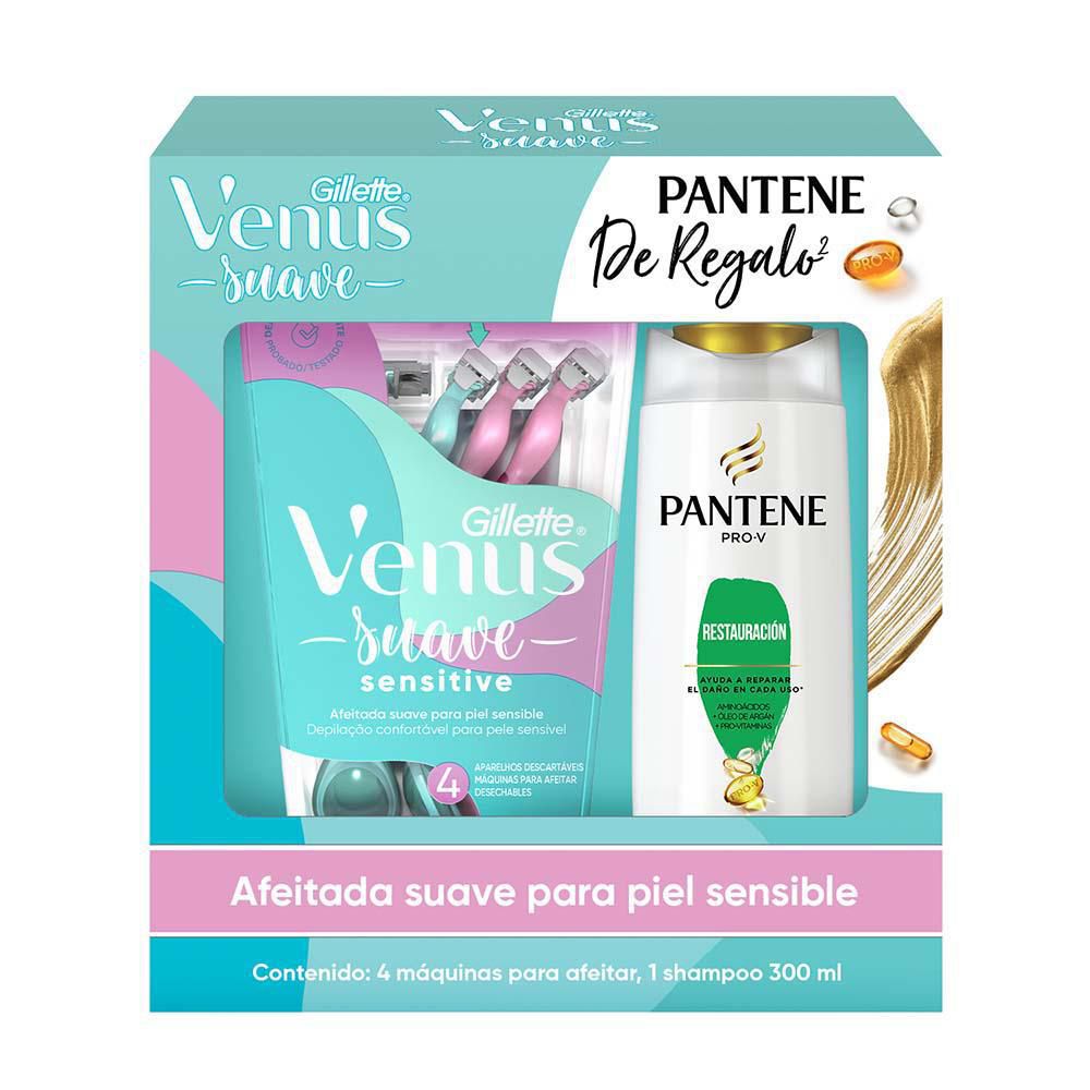 Máquinas de afeitar + shampoo VENUS suave sensitive (4 und)