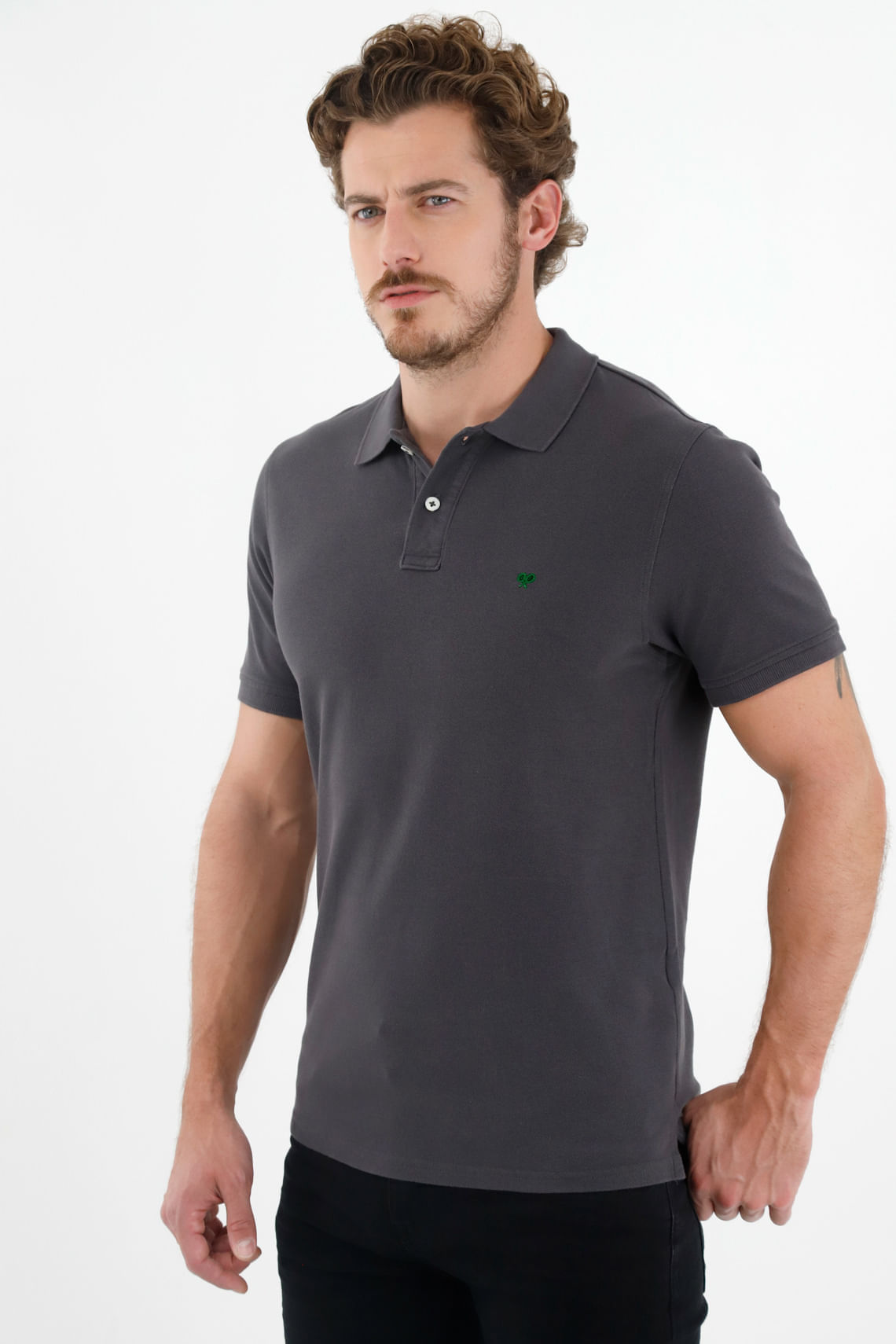 Polo gris con raqueta multicolor para hombre