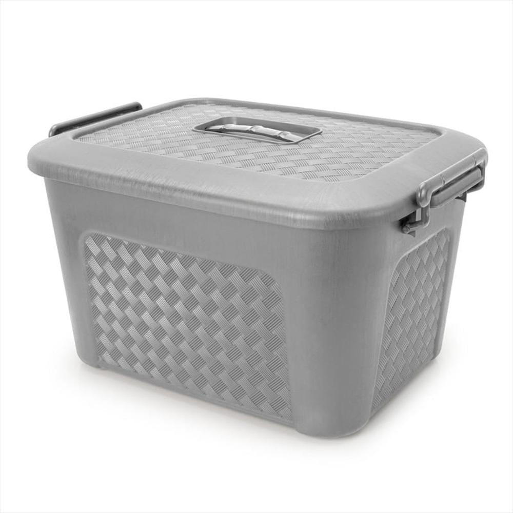 Cajonera Plástica Organizadora Con Tapa Caja Grande De 23L Gris