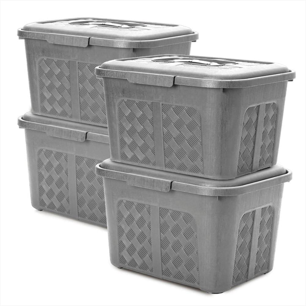Set X4 Cajoneras O Cajas Plásticas Organizadoras Con Tapa 6L Gris