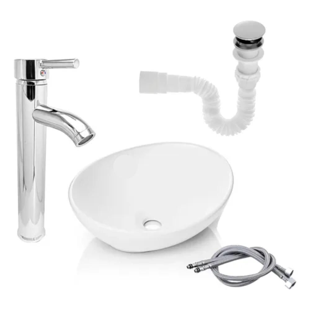 Kit Lavamanos + Grifo Monocontrol Cromada Curva + Push Flexible Y Acople Baños Accesorios Herraje