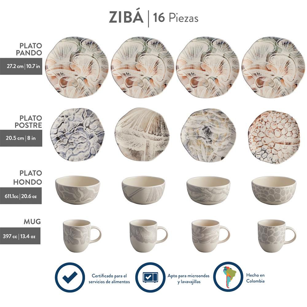 Vajilla 4 Puestos 16 Pz Ziba CORONA VL159I040116