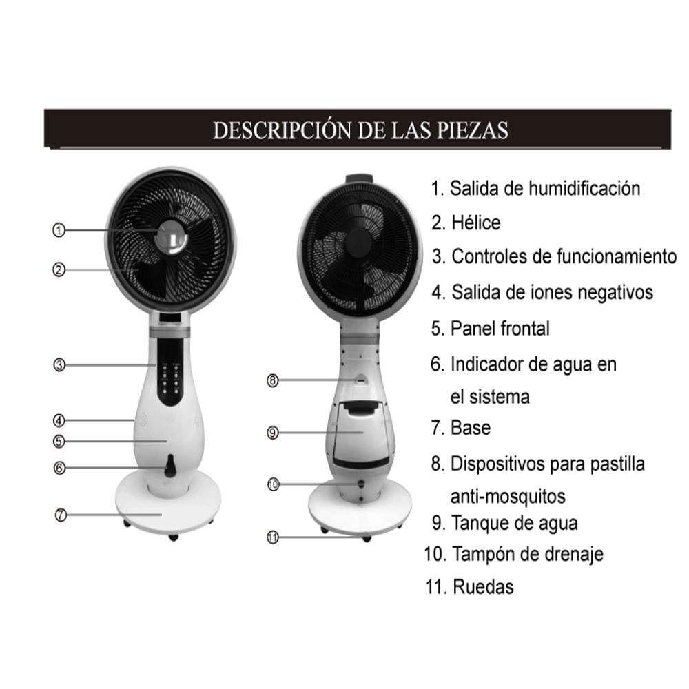 Ventilador 2 En 1 Con Vaporizador De Agua Negro